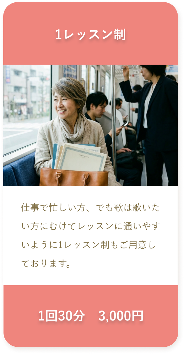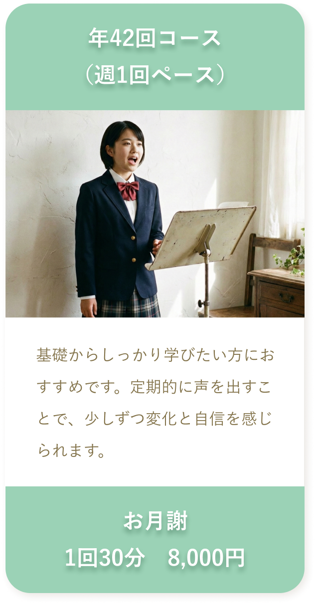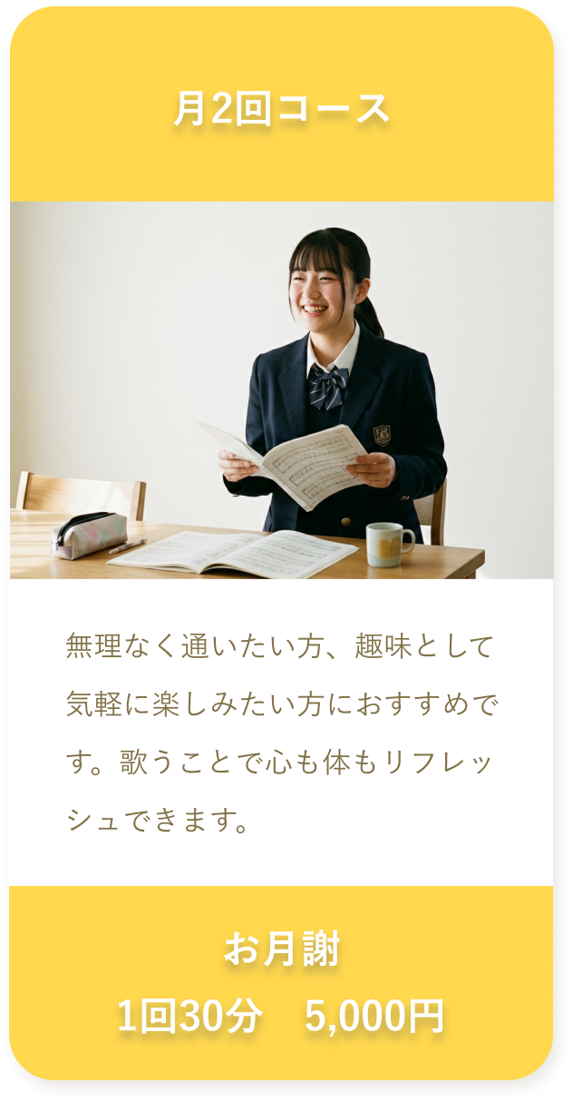 「音が合わない」「声が出にくい」といった悩みにも寄り添いながら、無理なく伸びやかに歌えるようサポートします。